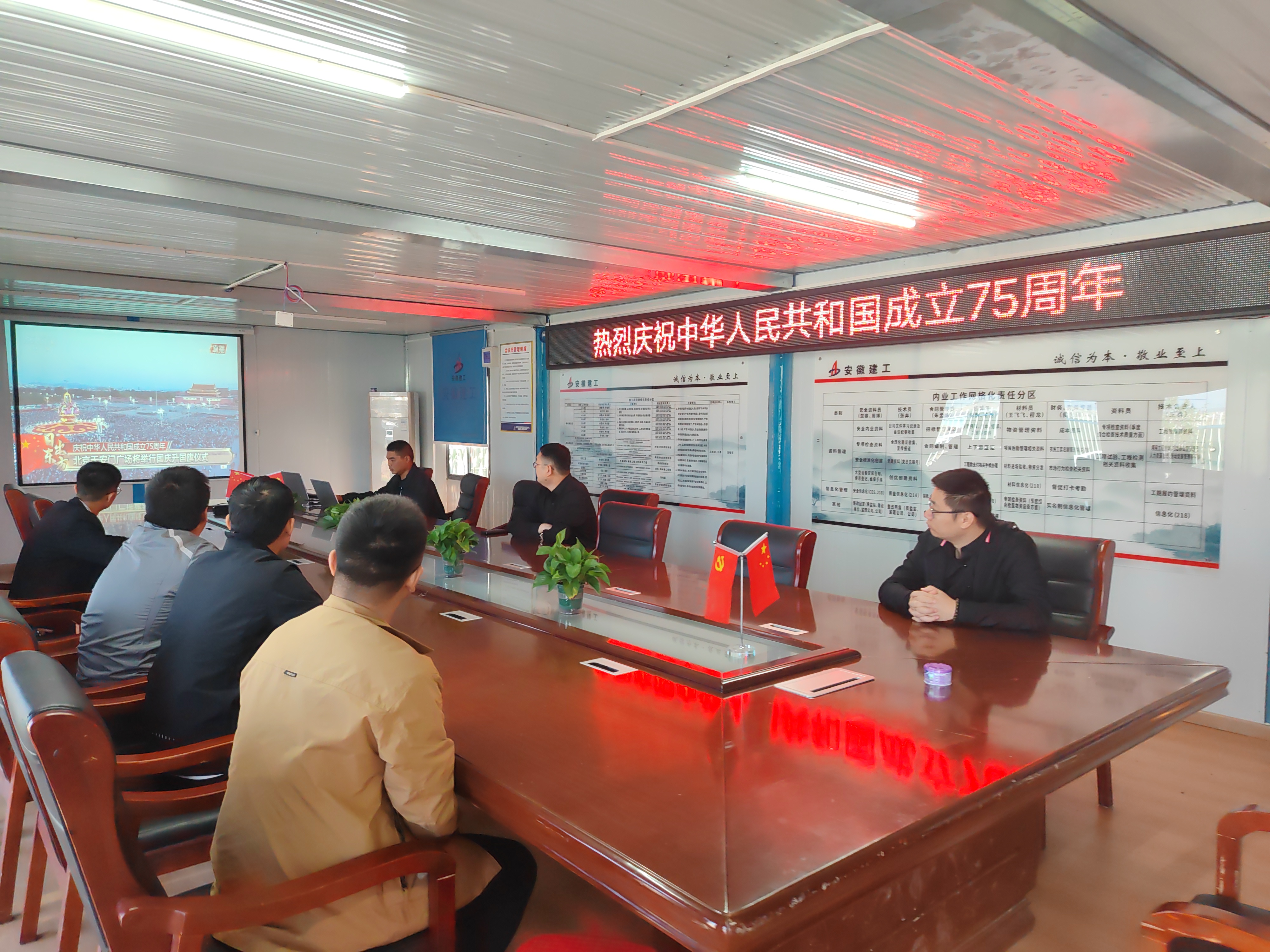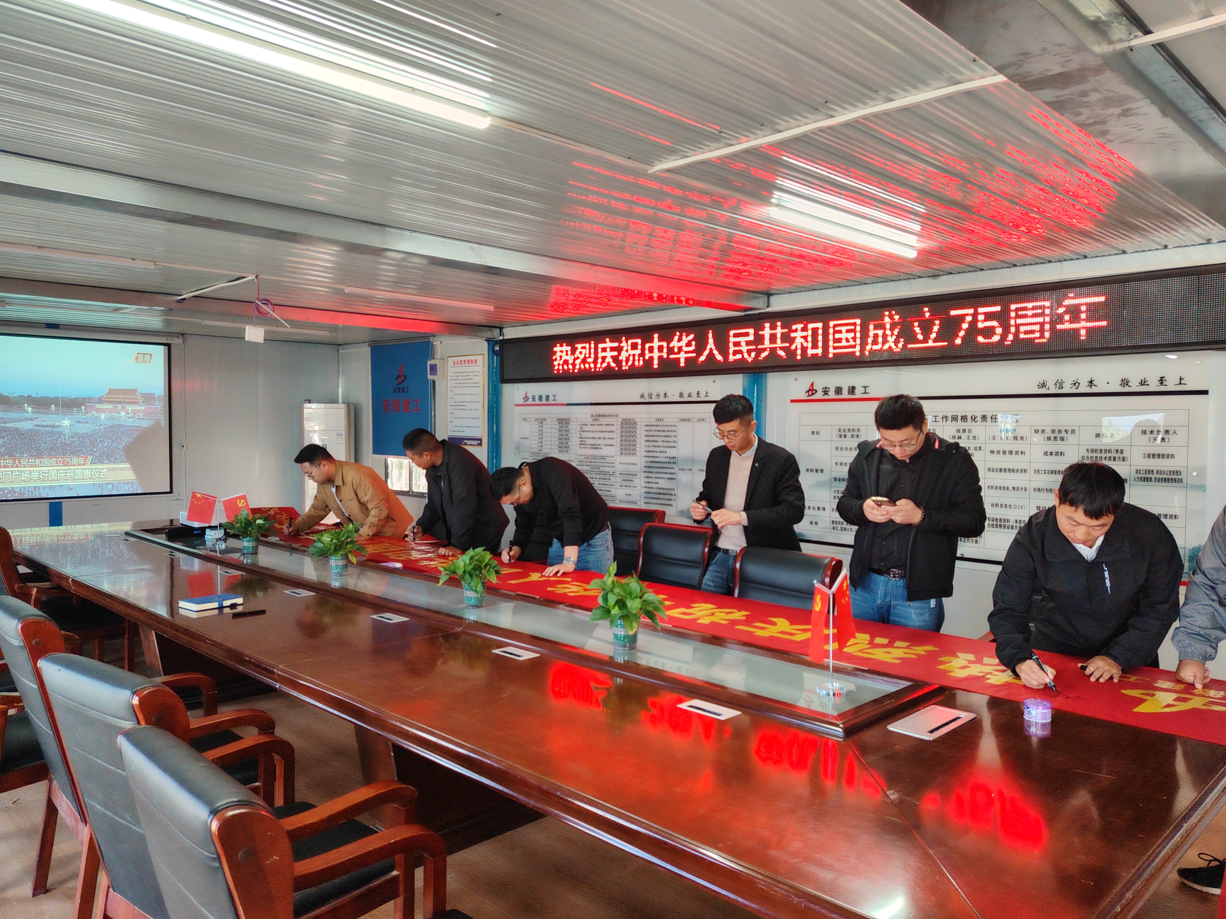 為慶祝中華人民共和國(guó)成立75周年,引導(dǎo)項(xiàng)目職工弘揚(yáng)愛(ài)國(guó)主義精神,近日,宿徐園區(qū)城鎮(zhèn)一體化AB地塊工程項(xiàng)目部組織開(kāi)展了“七十五載逢盛世,同心共筑譜華章”系列迎國(guó)慶活動(dòng),組織職工集中觀看天安門(mén)升國(guó)旗儀式,在慶祝橫幅上為祖國(guó)寫(xiě)下祝福語(yǔ),開(kāi)展“我與國(guó)旗合個(gè)影”活動(dòng)。
