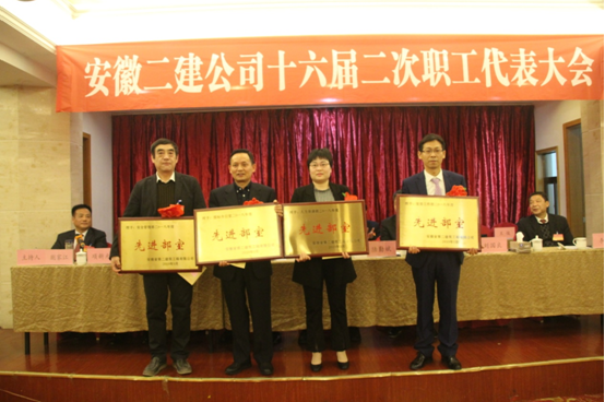 陽春三月,春回大地。在這充滿生機與希望的季節,沐浴著“兩會”的春風,3月18日,安徽二建公司十六屆二次職代會暨2018年度表彰大會在隆崗大酒店三樓多功能廳隆重召開。公司領導班子全體成員、各條戰線上的二建員工、退休老同志等89名與會代表肩負重托、歡聚一堂,建睿智之言、獻務實之策、謀長遠發展,共商企業改革發展大計。集團控股公司黨委書記、董事長趙時運,辦公室主任劉春雷應邀參會。