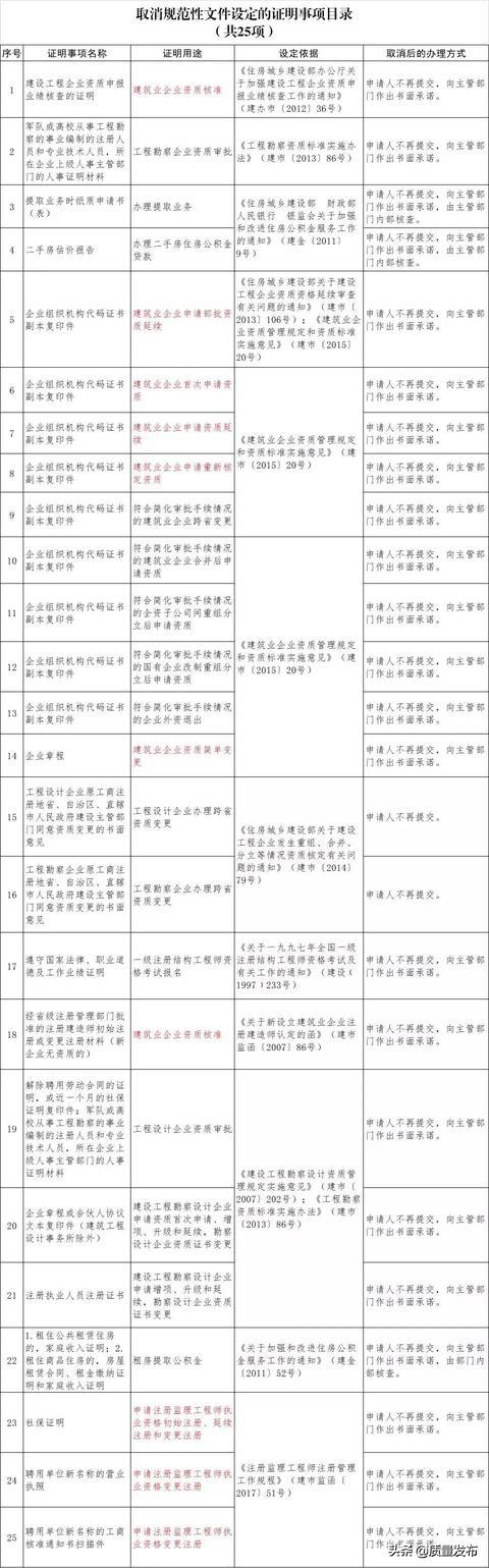 這次取消的力度很大,比如取消建設工程企業資質申報業績核查的證明,改為承諾。取消造價企業財務審計報告、完稅證明、專職人員證書、基本養老保險費用的憑證及其他相關證明材料等,部分證明改為承諾。