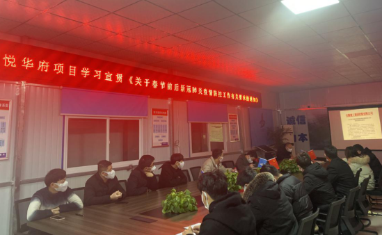 近日,銅陵吾悅?cè)A府項目組織學(xué)習(xí)【關(guān)于切實做好2021年“兩節(jié)”期間新冠肺炎疫情防控工作的通知】和【關(guān)于春節(jié)前后新冠肺炎疫情防控工作有關(guān)要求的通知】,根據(jù)文件精神安排部署春節(jié)前后新冠肺炎疫情防控工作,做到早安排早準(zhǔn)備,確保本項目在春節(jié)前后無疫情發(fā)生。