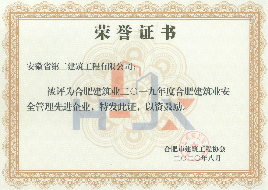 2019年度合肥建筑業(yè)安全管理先進企業(yè)