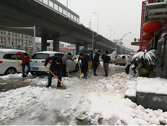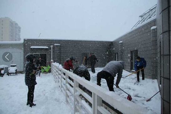 活動過程中,大家不畏嚴寒,頂著風雪,揮舞著鐵鍬對屋面、停車場以及公司大門外的積雪和結冰進行清掃,經過4個多小時的奮戰,大家齊心協力,分工明確,配合默契,終于將積雪全部鏟除。雖然室外溫度很低,大家的衣服、鞋帽都已濕透,但大家勞動的熱情和團結的力量讓這個冬日變得格外溫暖。掃雪活動不僅保證了職工的出行安全,更通過此次活動,充分體現出公司員工良好的精神面貌和團隊凝聚力。