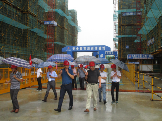 為了更好的開展“安全月”活動,推進(jìn)項(xiàng)目管理水平的提高,提升安全文明施工形象,加大質(zhì)量管控,6月30日,安徽二建三分公司在安建·龍溪觀邸項(xiàng)目舉辦了內(nèi)部觀摩會及安全知識競賽活動。分公司支部書記陳習(xí)武、分管生產(chǎn)領(lǐng)導(dǎo)、安全部門負(fù)責(zé)人以及分公司的各項(xiàng)目經(jīng)理、生產(chǎn)經(jīng)理、技術(shù)負(fù)責(zé)人、安全員等近50人冒雨參加此次活動。