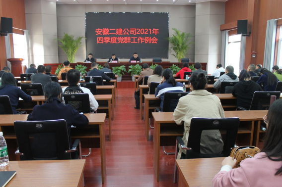 10月26日上午,安徽二建公司召開2021年四季度黨群工作例會,公司黨委副書記、工會主席王軍,黨委委員、紀委書記沈壯出席會議,機關(guān)黨群部門全體人員、基層各單位黨支部書記、團支部書記、綜合辦人員參會。會議由黨委工作部主任施用宏主持。